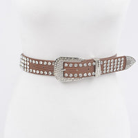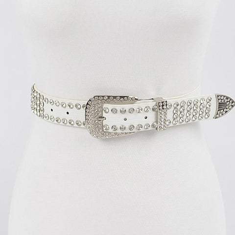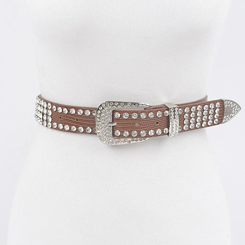 Imported STUDDED POLY BELT Brown.White.Black FBJ