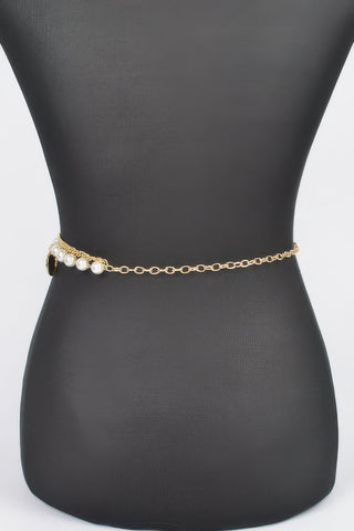Faux Pearl Round Metal Plus Size Chain Belt - Gold / One Sze Fits All