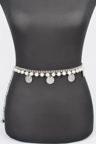 Faux Pearl Round Metal Plus Size Chain Belt Sale