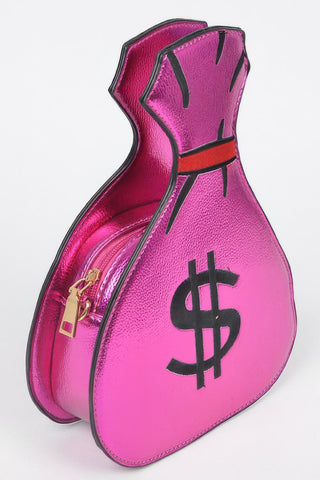 Product Description: Money Bag Shiny Clutch adds playful glamour with a luxe, statement-making design. Made from shiny polyurethane with mixed metal accents, this novelty clutch brings bold personality to your accessory collection. Its structured shape, measuring approximately 7.75 x 10.5 x 2.75 inches, offers enough space for your night-out essentials. A zip closure keeps everything secure, while the unique "money bag" silhouette turns heads. This piece pairs perfectly with minimal outfits for maximum impact. Great for themed events, holiday parties, or fun evenings. A conversation-starting clutch that adds sparkle and statement to any look.