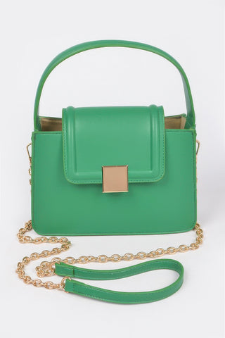 Product Description: The Faux Leather Top Handle Crossbody Bag offers a stylish blend of sophistication and practicality. Designed with a structured silhouette, this bag features a top handle for a polished look while also allowing convenient crossbody wear. The smooth faux leather exterior creates a refined appearance that pairs easily with both casual and dressy outfits. Its compact design provides enough space for essential items without feeling bulky. Mixed metal accents enhance the overall structure while adding subtle decorative detail. The versatile style makes it suitable for work, errands, or evening outings. With its modern design and functional layout, this bag is a fashionable everyday accessory.