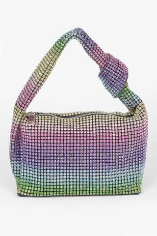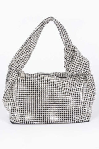 Product Description: Sleek and sparkly, the Rhinestone Shoulder Zip Bag adds instant glamour to your wardrobe. Covered in radiant rhinestones, this compact shoulder bag features a practical zip closure and a structured silhouette. It’s ideal for both nights out and elevated daytime looks, offering just the right amount of shine.