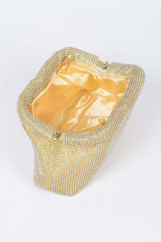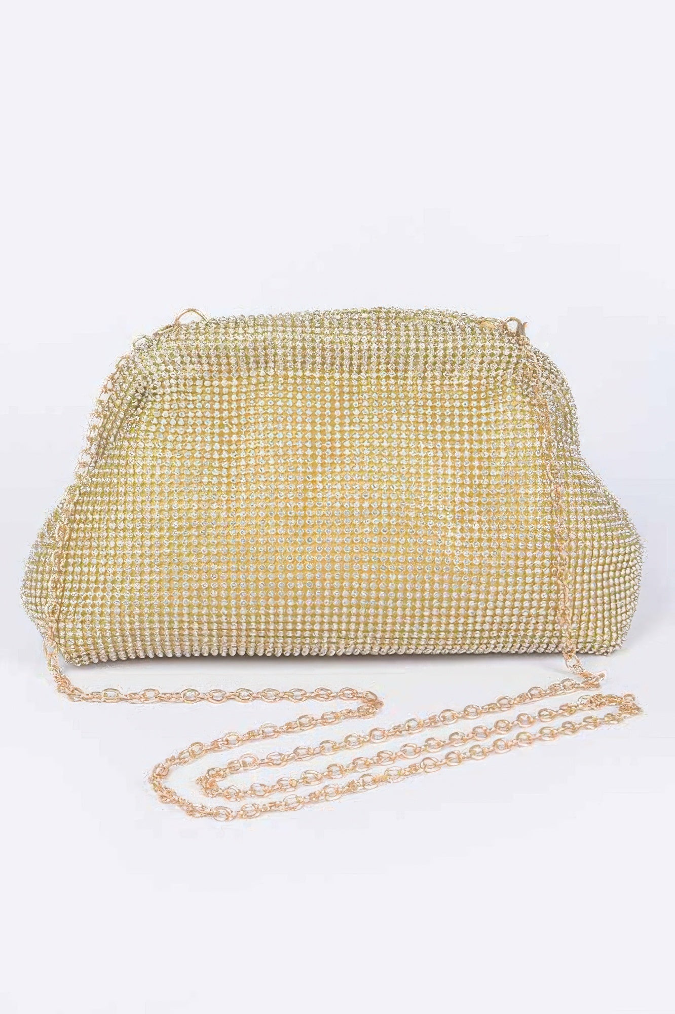 Product Description: All-out sparkle meets sleek design in the Rhinestone Party Clutch. Covered in dazzling rhinestones, this structured clutch is made to catch the light and attention. Its compact shape fits the essentials, while the metallic hardware adds a polished finish. Perfect for weddings, cocktail parties, or holiday events, it’s the ideal piece to elevate your evening look. Carry it by hand or tuck it under your arm for a chic, effortless feel.