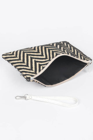 Product Description: The Faux Straw Pouch Bag brings natural texture and compact convenience together in one stylish piece. Its slim profile and woven look make it ideal for warm-weather styling or casual outings. Whether used as a clutch or tucked inside a larger tote, this pouch offers versatile function. The soft construction and flat shape make it easy to pack and carry. A secure zipper keeps small essentials organized and within reach. With its neutral tones and polished trim, it pairs seamlessly with summer dresses or beachwear. Simple, chic, and effortlessly useful.