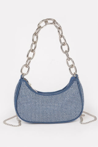 Product Description: This hot fix stone small hobo bag blends compact design with bold embellishment. Featuring shimmering stones, it delivers eye-catching texture in a refined size. The hobo silhouette keeps the look relaxed yet polished. A chain strap adds a modern, elevated touch. Designed for essentials, it offers practical everyday functionality. Lightweight materials ensure comfortable wear. This bag is a versatile statement piece with standout appeal.