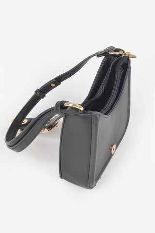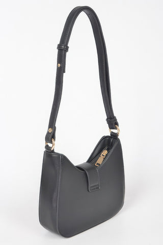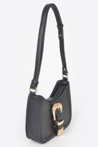 Product Description: This vegan shoulder bag delivers clean lines with bold metal buckle detailing. Designed with a structured silhouette, it offers a refined and modern look. The buckle accent adds visual interest and polished contrast. Comfortable shoulder straps allow for easy daily wear. Compact sizing keeps essentials secure and organized. Durable materials provide long-lasting structure. This bag is a versatile accessory designed for everyday sophistication.