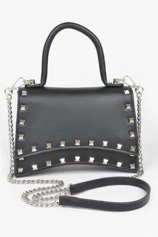 Product Description: Add a modern edge to your look with the Metallic Faux Leather Studded Top Handle Clutch. Designed with a glossy metallic finish and bold stud embellishments, it’s the perfect mix of chic and daring. Its structured shape and spacious interior make it a stylish companion for nights out or special occasions.