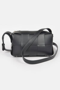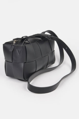 Faux Leather Braided Zip Bag - Black