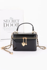 Product Description: Sleek and romantic, the Patent Faux Leather Envelope Clutch brings glossy texture and sweet charm to your look. Crafted in a structured envelope shape, it features high-shine patent faux leather with a heart-shaped charm and subtle chain detail. Measuring 6"W x 3.25"H x 4"D, it's compact yet functional—ideal for your phone, cards, and lipstick. This clutch is perfect for date nights, parties, or anytime you want to add a polished finish with a hint of whimsy.