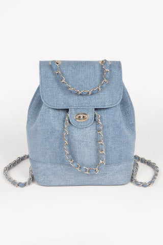 Product Description: Style meets utility in the Denim Backpack, designed for life on the go. With a compact yet roomy shape, it holds your daily essentials while keeping your look laid-back and polished. Made with sturdy denim and mixed metal accents, this piece blends durability with casual charm. Ideal for errands, commuting, or off-duty days.