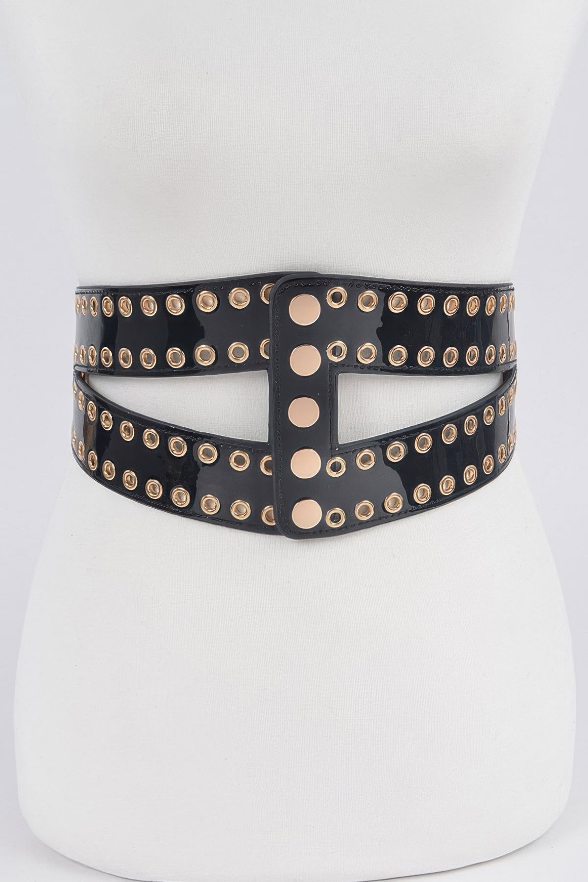 Corset Stretch Belt W Eyelet - Black Gold / One Size Fits Most