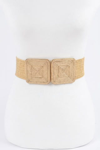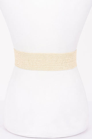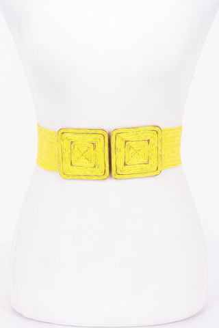 Faux Straw Two Buckle Elastic Belt - Fuschia