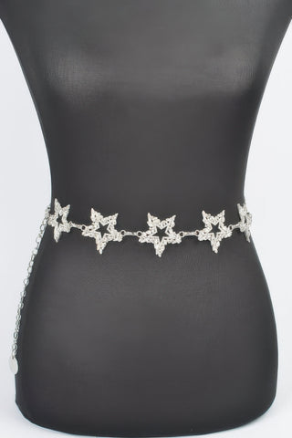 Product Description: The Glass Star Chain Belt brings sparkle and edge together in one striking accessory. Featuring layered iron chains and glass star accents, it adds shimmer and structure to your waistline. Perfect for festival wear, night-out outfits, or bold styling moments. The adjustable fit allows you to wear it draped or snug. It’s a celestial-inspired piece that delivers major shine.