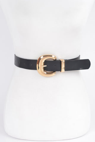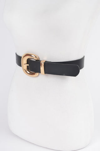 Product Description: Timeless and versatile, the Faux Leather Metal Buckle Belt is a sleek addition to any wardrobe. Crafted from high-quality PU faux leather, this belt features a bold metal buckle that adds a refined edge to your look. Its clean design makes it easy to pair with everything from tailored pants to flowy dresses. Whether you're cinching the waist of a blazer or adding polish to everyday denim, this belt offers both structure and style. A go-to accessory for effortless sophistication.