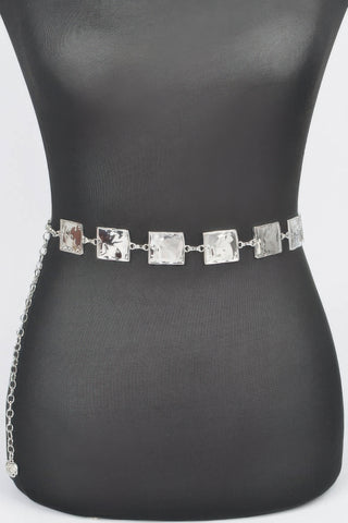 Add the Hammered Square Metal Chain Belt in Gold or Silver to your cart today and complete your look with this bold and stylish accessory!