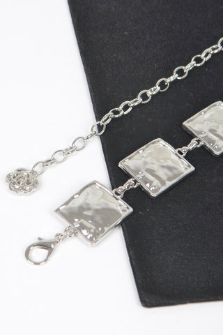 This belt adds a strong, fashionable statement to your look, thanks to its distinctive hammered square metal links. Whether you're dressing up or down, it adds texture and personality to your wardrobe.