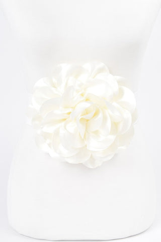Product Description: Make a statement with the Satin Big Flower Elastic Belt. Featuring a bold satin blossom at the center, this piece adds dramatic flair to dresses, skirts, and tunics. The wide elastic band ensures a snug, flattering fit while remaining comfortable throughout the day. Ideal for weddings, formal looks, or giving structure to flowy silhouettes. It’s a stylish blend of softness and statement.
