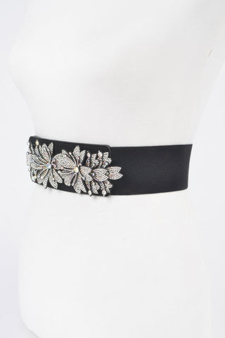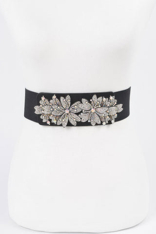 Product Description: Make a statement with the AB Stone Flower Elastic Belt, a chic and sophisticated accessory designed to elevate any look. Crafted in classic black, this belt features dazzling rhinestone flower accents that add a touch of glamour. The elastic construction ensures a snug, comfortable fit, while the wide 2.5" band defines the waistline beautifully. With a total length of 31", it’s the perfect finishing touch for dresses, blouses, or high-waisted styles. Elegant yet bold, this belt brings effortless polish to your wardrobe.