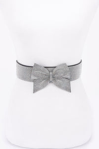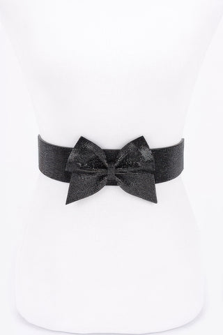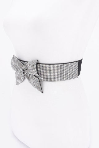Rhinestone Ribbon Elastic Belt - Black / One Size Fits All