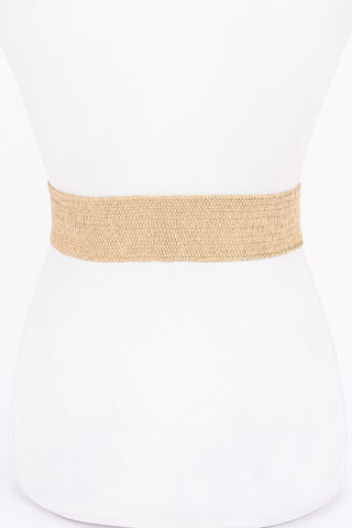 Perfect for casual outings, office wear, or even a relaxed evening look. The Metal Buckle Elastic Faux Straw Belt works effortlessly with dresses, skirts, or pants, making it a versatile and essential accessory.