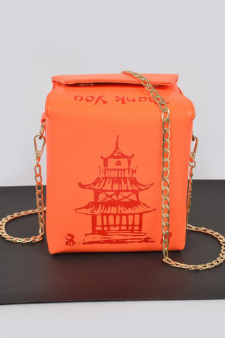 Add a fun and fashionable twist to your look with our Chinese To Go Box Clutch. Choose your favorite color and order now to carry a statement piece that's sure to turn heads!