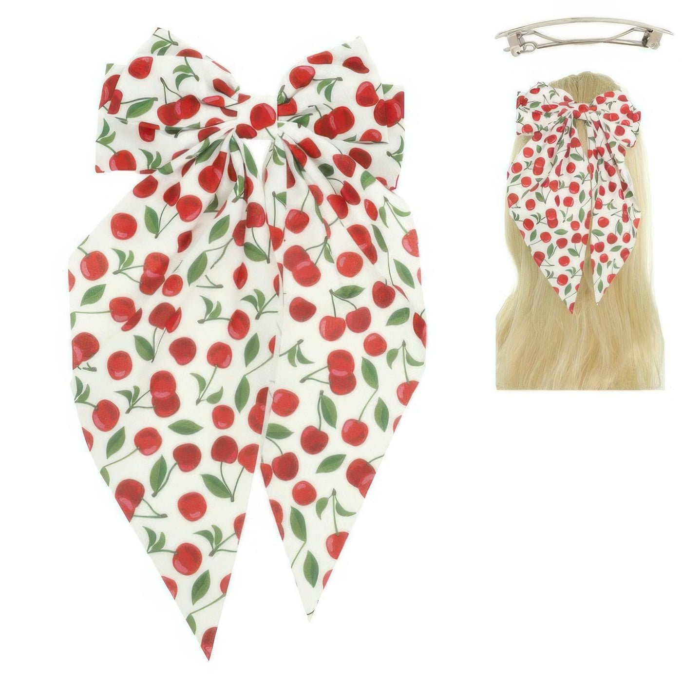 Product Description: Add a sweet touch to any hairstyle with the Playful Cherry Design Barrette Hair Clip. This oversized fabric bow clip features a charming cherry print, blending retro-inspired fun with everyday versatility. Lightweight and easy to wear, it offers a comfortable grip and flexible build that holds securely without pulling. Perfect for school, picnics, or casual outings, this accessory brightens up any look with cheerful flair. A delightful pick for teens, style lovers, and anyone who adores playful details.