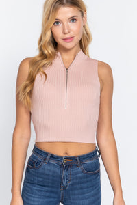 Sleeveless Rib Sweater Top W/zipper Sale