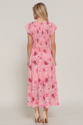 Ruffl Slv Smocked Floral Print Dresss Sale