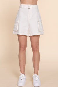 Upgrade your casual wardrobe with our Belted Cargo Shorts in White and enjoy comfort without compromising on style!