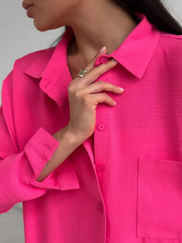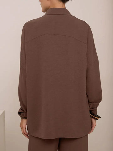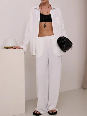 Button Up Long Sleeve Shirt and Pants Set Sale