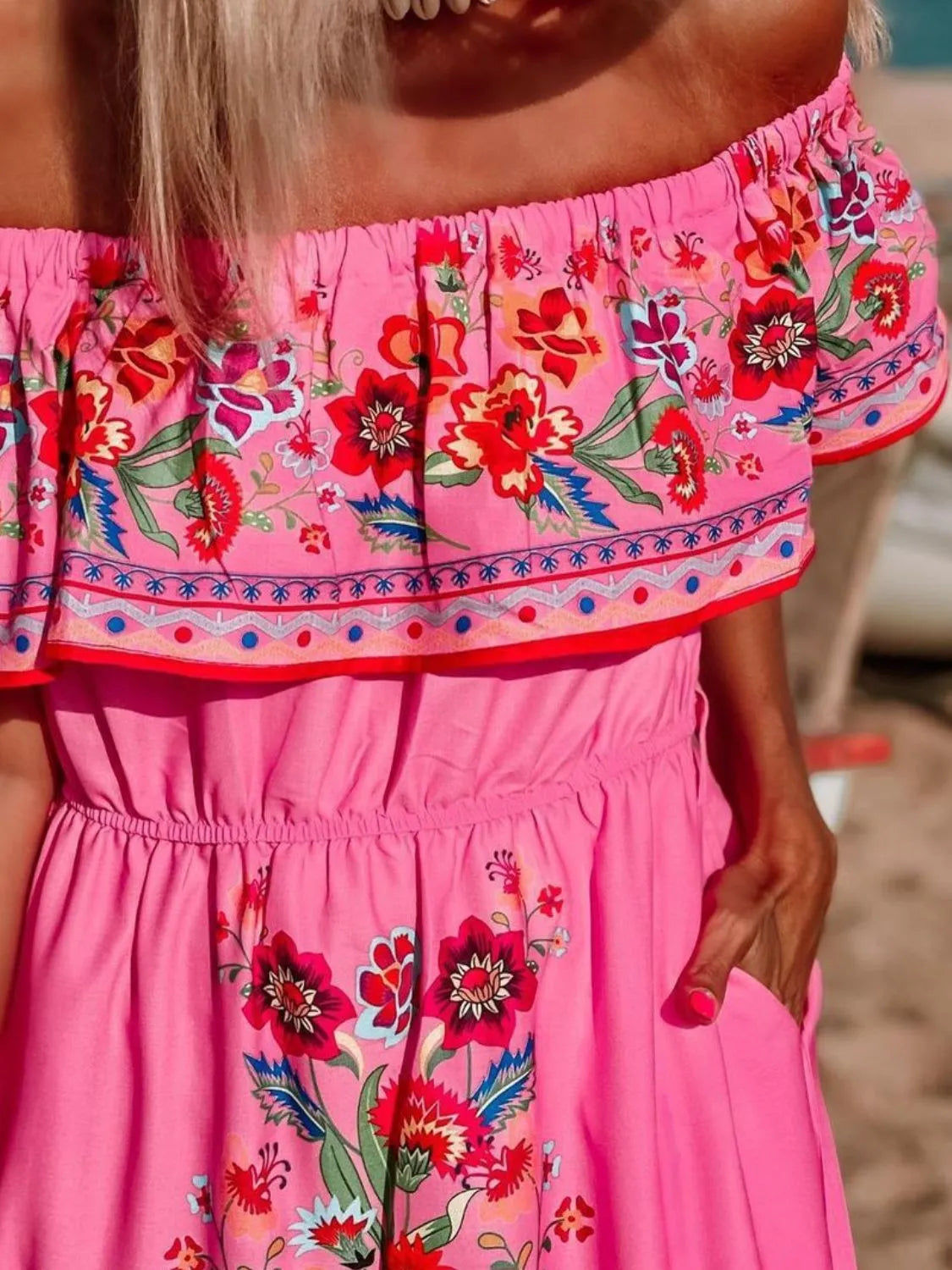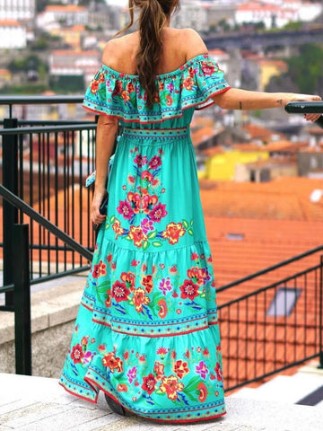 Floral Off Shoulder Ruffle Maxi Dress Sale