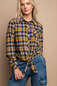 Tie Front Button Down Plaid Shirt With Front Pocket Sale