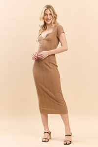 Product Description: Add a touch of romance to your look with this short sleeve dress, featuring a charming sweetheart neckline that beautifully highlights your silhouette. Designed with a unique bubble rib texture, this piece offers a modern twist to a timeless silhouette. The fitted cut enhances your figure, while the midi length ensures versatile wear for any occasion. Crafted from a soft, knitted blend of 95% polyester and 5% spandex, this dress provides a gentle stretch and all-day comfort. Whether for a day out or a special evening, it’s an easy choice for effortless elegance.