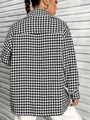 Houndstooth Button Down Long Sleeve Shacket Sale