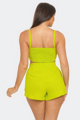 Front Oversized Bow Twisted Tie Top And Shorts Set Sale