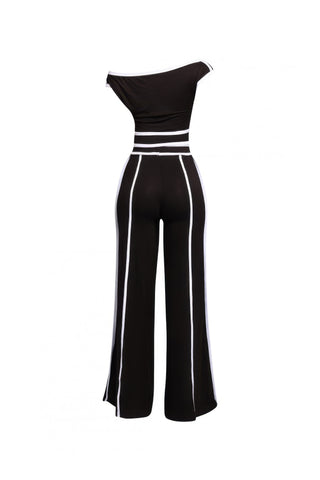 Product Description: Make a sleek, stylish statement with this color contrast detailed off-shoulder set, designed for effortless coordination and standout appeal. The off-shoulder top features short sleeves and striking contrast detailing, adding a bold, modern touch. Paired with wide-leg pull-up pants, the set offers a flattering silhouette with easy, all-day comfort. Crafted from a soft stretch rayon blend, it drapes beautifully on the body while allowing for flexible movement. Perfect for day-to-night wear, this set combines comfort and polish in one eye-catching look.