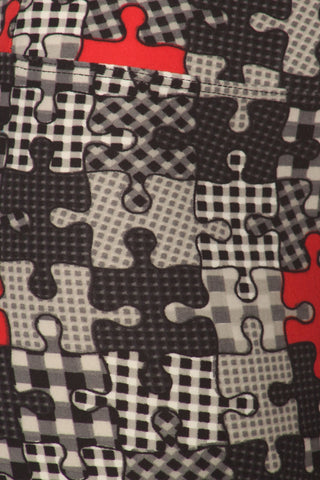 Imported One Size Fits Most 5-inch long YOGA style banded lined puzzle printed knit legging with high waist 92% Polyester 8% Spandex Multi LIT