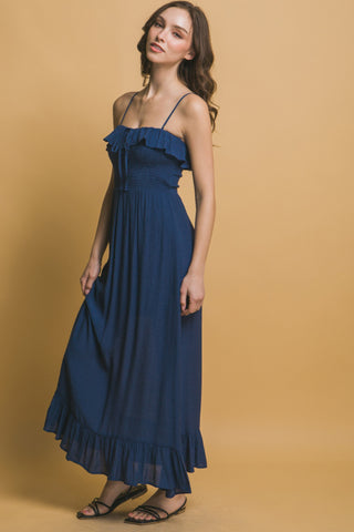 Product Description: The Smocked Ruffle Maxi Dress is a charming and versatile piece that effortlessly enhances your everyday wardrobe. Made from a comfortable blend of 65% rayon and 35% polyester, this dress combines a flattering smocked waist design with a relaxed fit that ensures ease of movement throughout the day. The ruffle accents add a playful, feminine touch, while the maxi length creates an elegant and elongating silhouette. Perfect for a variety of occasions, from brunches to beach strolls, this dress offers a delightful mix of comfort and style.