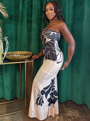 Product Description: The Midnight Bloom Halter Jumpsuit captures effortless elegance with a striking floral print and flowing wide-leg silhouette. Designed for movement and comfort, this piece is crafted from a soft, stretch-enhanced fabric that drapes beautifully on the body. The halter neckline flatters the shoulders and adds a touch of evening-ready allure, making it ideal for everything from seaside dinners to night-out occasions. With its eye-catching design and easy fit, this jumpsuit blends sophistication with a free-spirited vibe. Dress it up with heels or down with sandals for versatile styling.