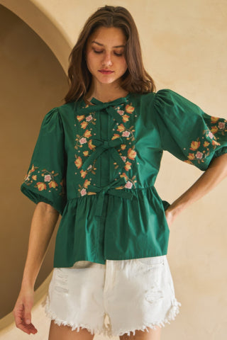 Product Description: This poplin front ribbon tie blouse combines soft structure with feminine detailing for a look that’s effortlessly polished. Featuring a delicate front tie and refined embroidery, it brings charm and character to your everyday wardrobe. The smooth, stretch-infused fabric ensures a comfortable fit while maintaining its tailored appeal. Versatile enough to dress up or down, this blouse pairs beautifully with skirts, trousers, or denim. It’s a stylish staple with subtle elegance that transitions seamlessly from workdays to weekends.