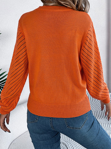 Openwork Round Neck Long Sleeve Knit Top Sale