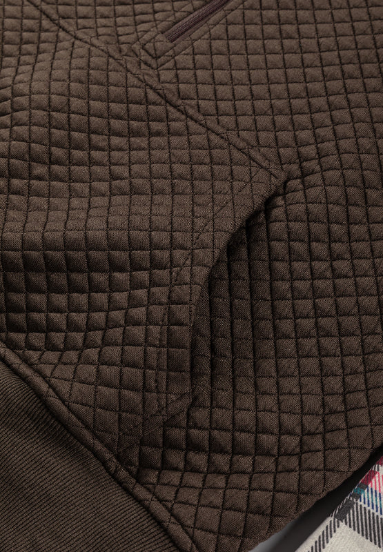 Plaid Half Zip Long Sleeve Sweatshirt - Chocolate / S
