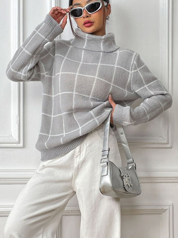 Plaid Turtleneck Long Sleeve Sweater Sale