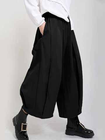 Plus Size Wide Leg Pleated Detail Cropped Pants Sale