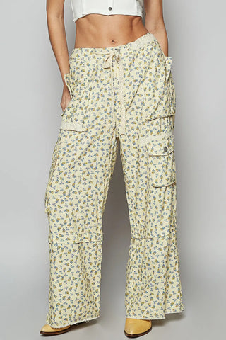 POL Floral Cargo Wide Leg Pants with Lace Drawstring - VANILLAFLORAL / S
