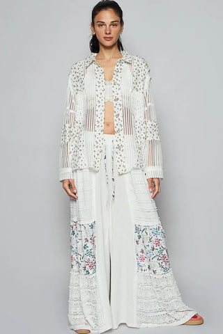 POL Floral Crochet Patchwork Long Sleeve Shirt - White / L