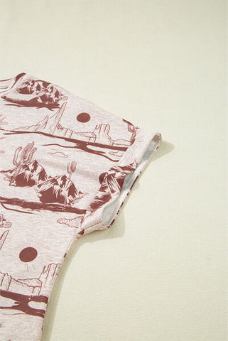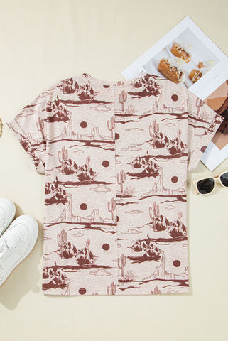 Printed Round Neck Short Sleeve T-Shirt Sale