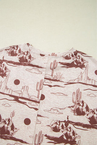 Printed Round Neck Short Sleeve T-Shirt - Brown / XL