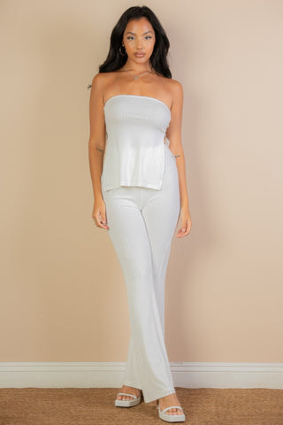 Ribbed Side Slit Bandeau Top & Flare Pants Set