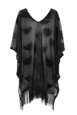 Floral Lace Poncho With Tassel - Black / One size fits all